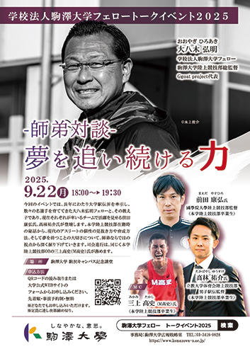 | 学校法人駒澤大学フェローイベント2025「師弟対談 夢を追い続ける力」 | |