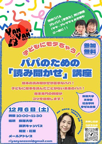 | 駒大生社会連携プロジェクト駒澤大学文学部社会学科李ゼミ企画パパ(とプレパパ)のための「読み聞かせ」講座 | |