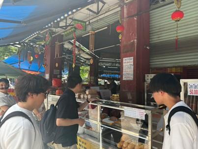 帰国前日の最終日にはベトナムにある日越大学での発表および交流会も行いました。調査してきた内容を英語で資料にまとめ発表することは苦戦をしましたが、新たな挑戦となりました。他者に伝える過程で、自分たちの理解が曖昧だった点や、論理の整理が不十分だった点が明らかになり、研究内容を見直す重要性を実感しました。現地のベトナムの学生とも意見交換や交流会を行い新たな視点に触れる有意義な機会となりました。