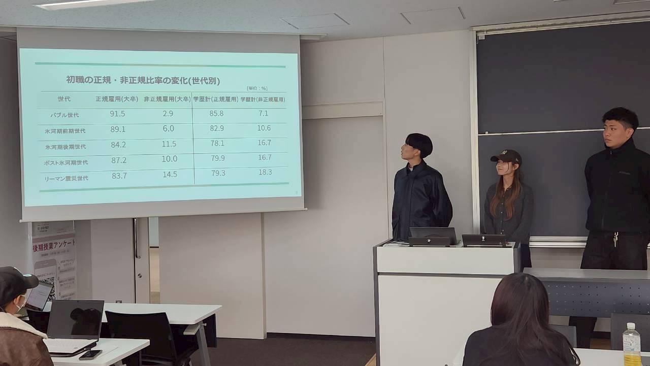 地方自治体も、地域ニーズに合わせた資格取得支援や 、引きこもり層へのアウトリーチ支援などを行っている。発表では、特に氷河期後期世代で格差が深刻であり、新卒時の非正規比率の格差が将来の年収格差につながり、正規・非正規の分断が固定化していると結論付けた。