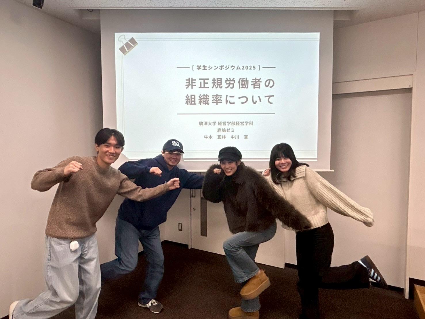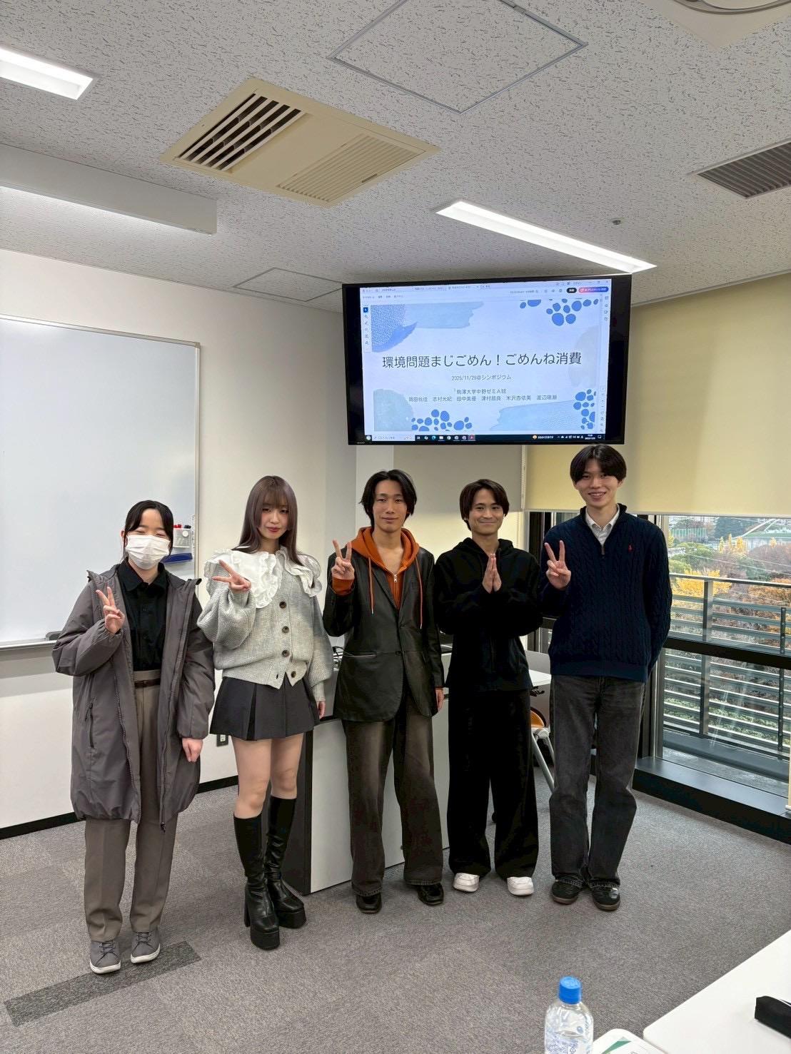 異なる分野を学ぶゼミの方々と議論できたことは、とても新鮮な経験でした。自分たちだけでは得られなかった多角的な視点から、今回取り上げたテーマについて改めて考える良い機会となりました。学生シンポジウムを通して得た知見を、今後の活動に活かしていきたいと思います。